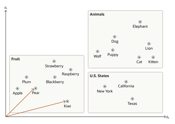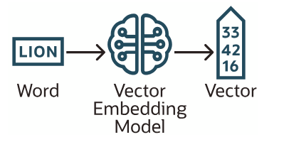 오라클 AI 벡터 검색은 데이터 요소를 수학적 벡터로 표현한 데이터 포인트의 수학적 벡터 표현인 벡터 임베딩을 저장합니다. 이러한 벡터 임베딩은 단어, 문서와 같은 콘텐츠의 의미론적 의미를 설명합니다.