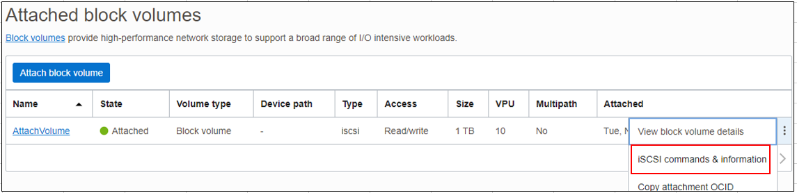 > Use Oracle Cloud Agent to automatically connect to ISCSI-attached volumes