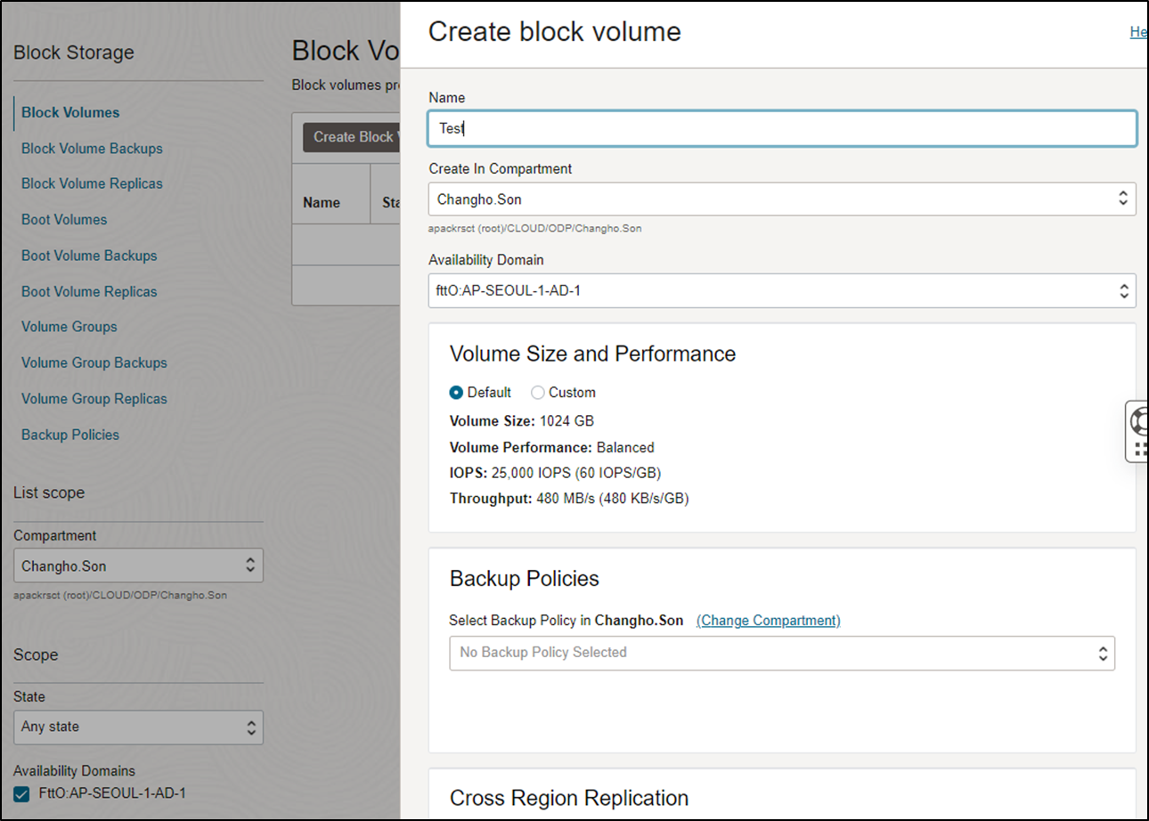 Block Volume Performance에 대한 자세한 내용은 아래Link참조
