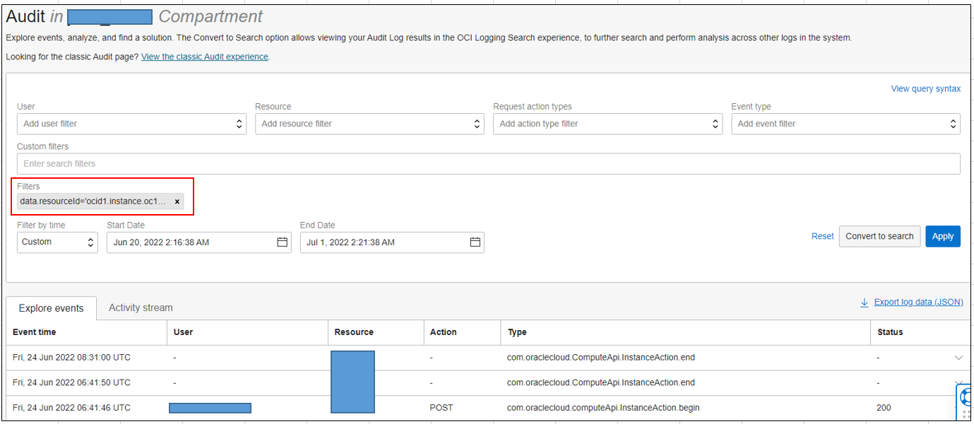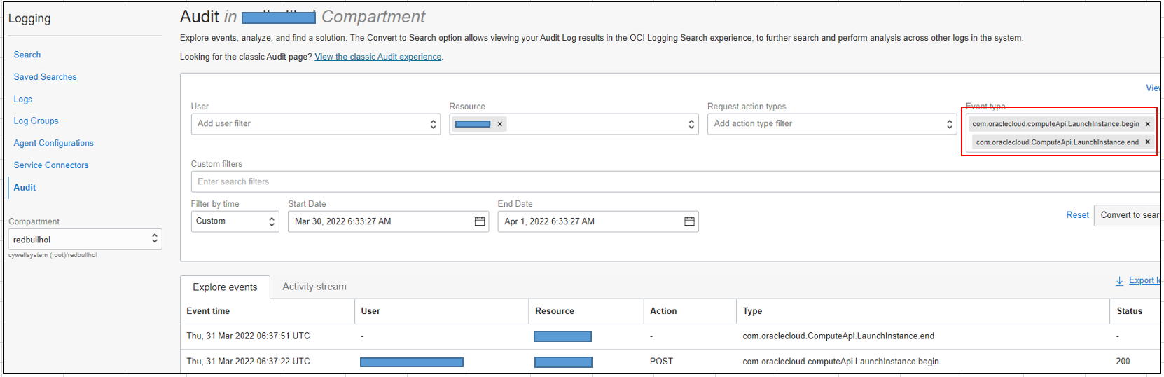 OCI Audit Service에서는 OCI console, Command Line Interface (CLI), Software Development Kits (SDK), 다른 OCI services에서 발생되는 모든 API call을 조회할 수 있다.