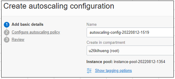 Instance Pool에서 직접 생성하거나 Autoscaling Configuration메뉴에서 추가할 수 있다.