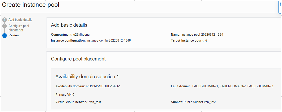 Instance Pool을 여러 Availability Domain, Fault Domain에 분산시킬 수 있다.