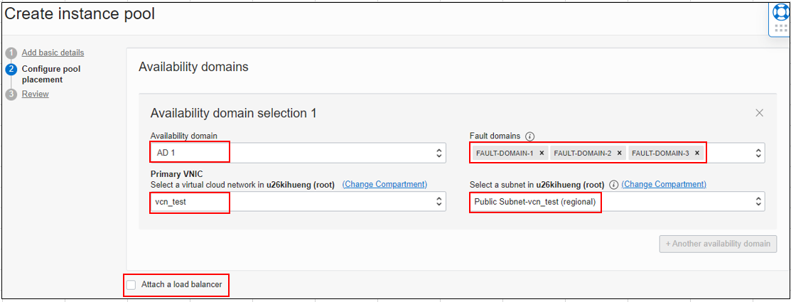 고르게 Instance배포가 분산되게 하려면 배포할 Fault Domain을 선택한다.