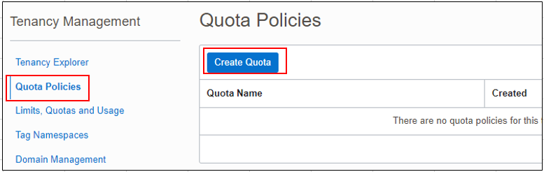 Compartment Quotas는 Quota Policy구문을 추가하여 등록할 수 있다.