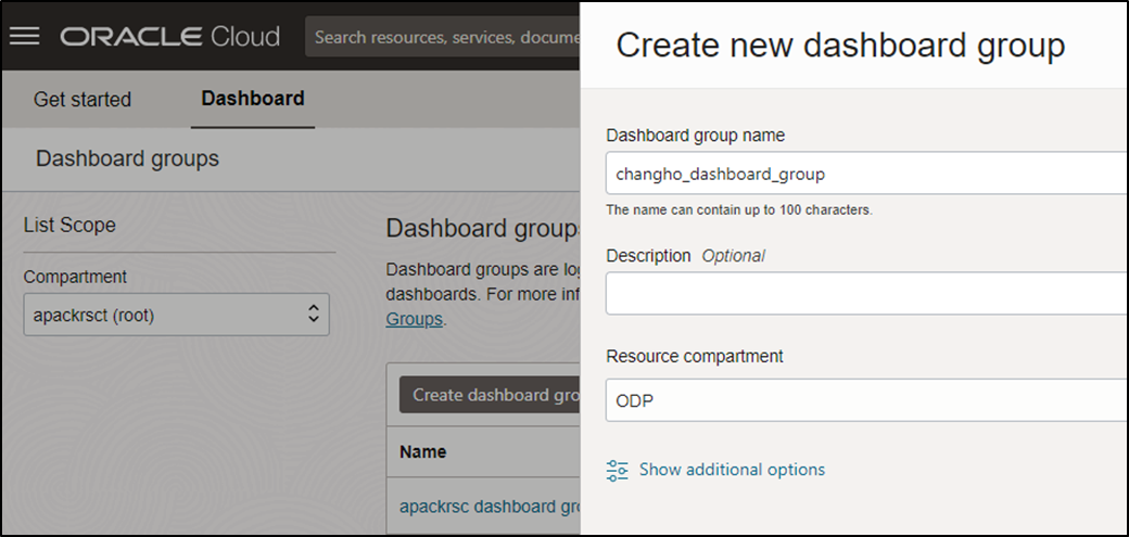 where target.dashboardgroup.id='ocid1.dashboardgroup.oc1.phx.<uniqueID>'