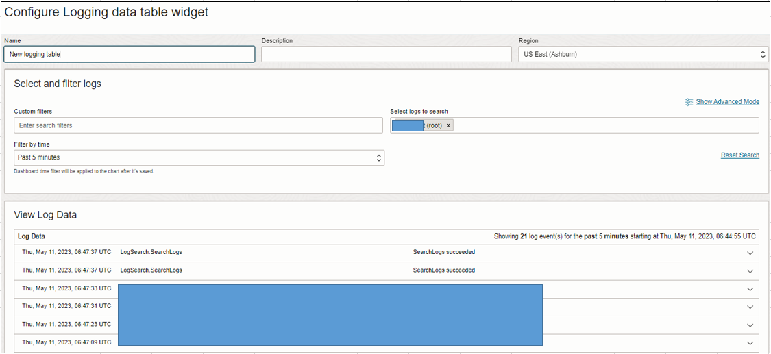 Logging Service에 저장된 Log를 Table형태로 보여준다.