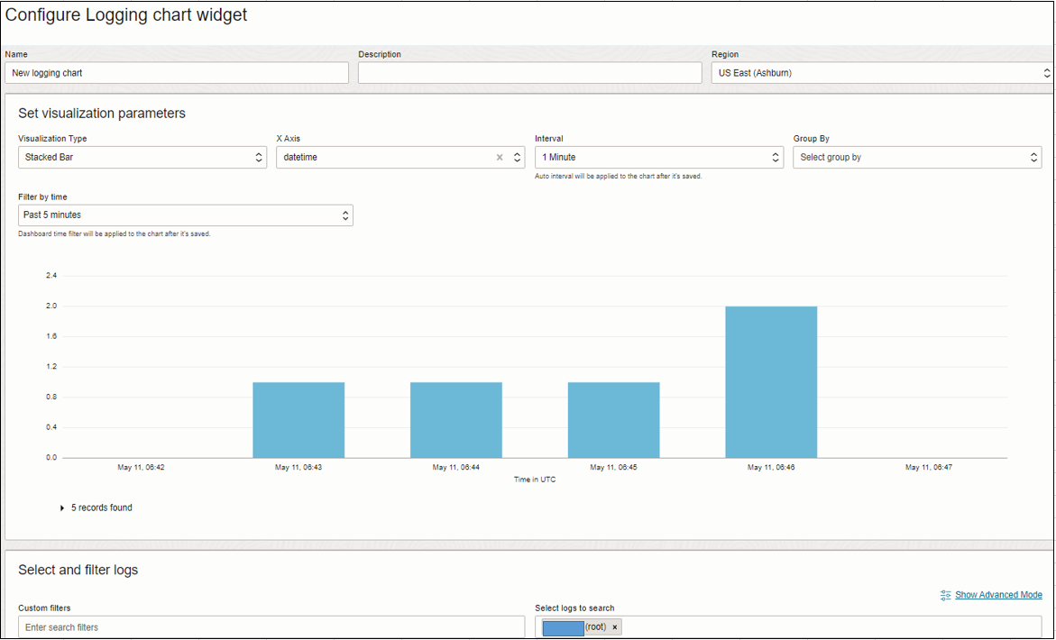 Logging Service의 Visualize tab에서 조회되는 Log에 대한 Chart를 보여준다.