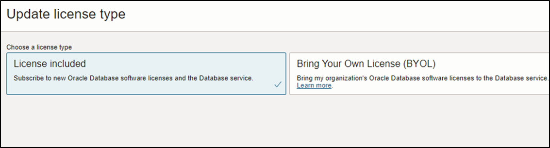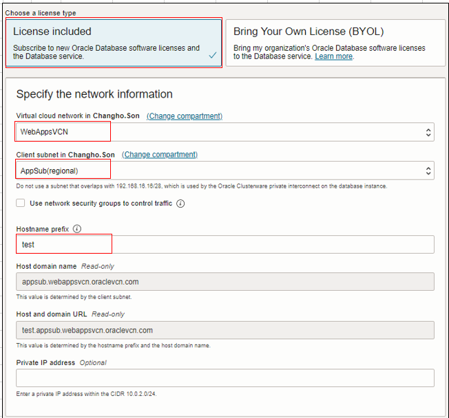 License Type과 Base DB가 속할 VCN을 설정한다.