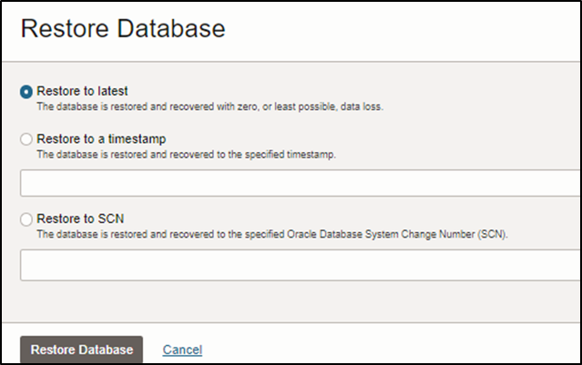 이 작업은 Object Storage나 Autonomous Recovery Service로 생성된 백업을 사용하여 수행할 수 있다.