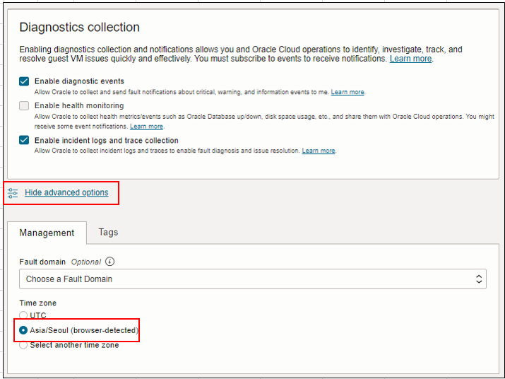 Time zone은 Asia/Seoul로 변경한다.