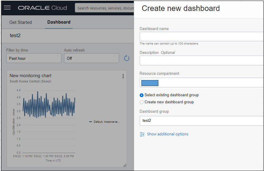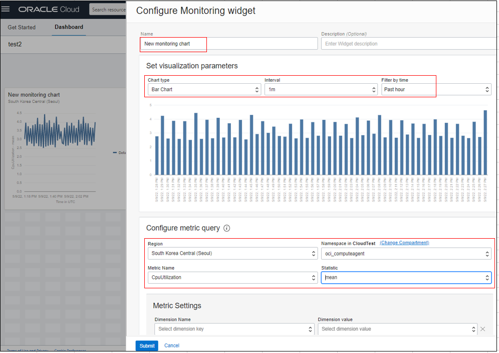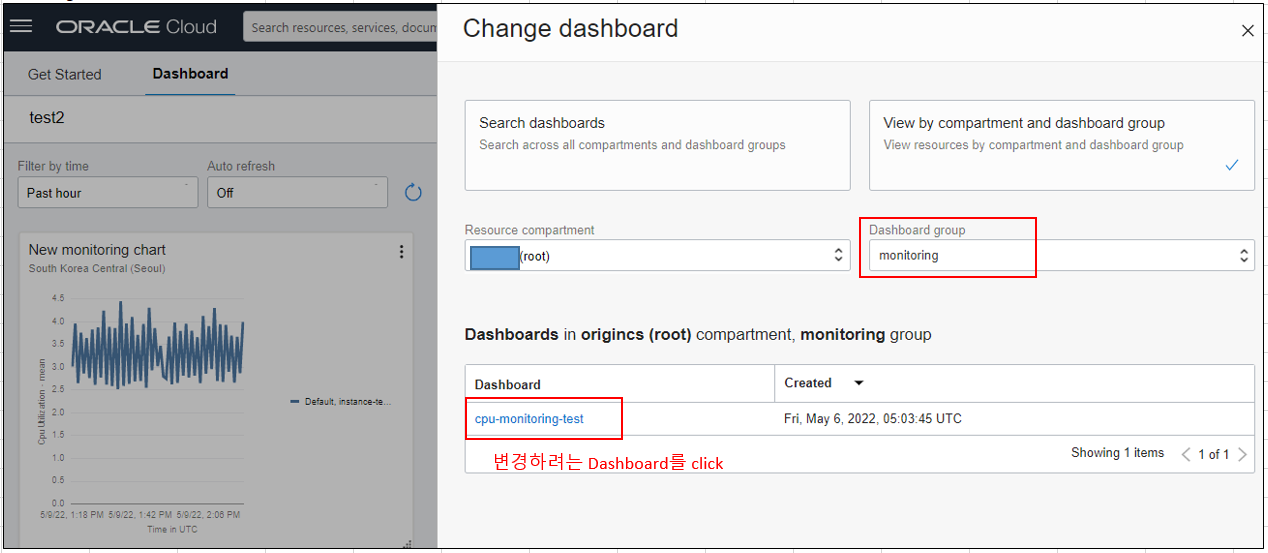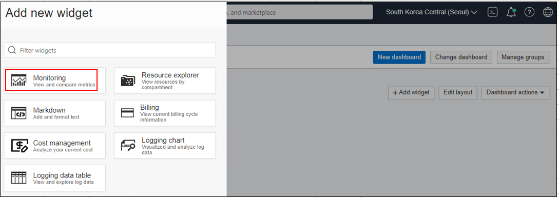 > Compute Instance CPU 사용량 Monitoring widget추가