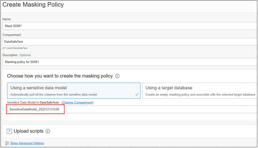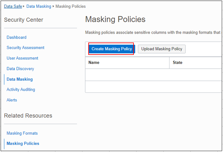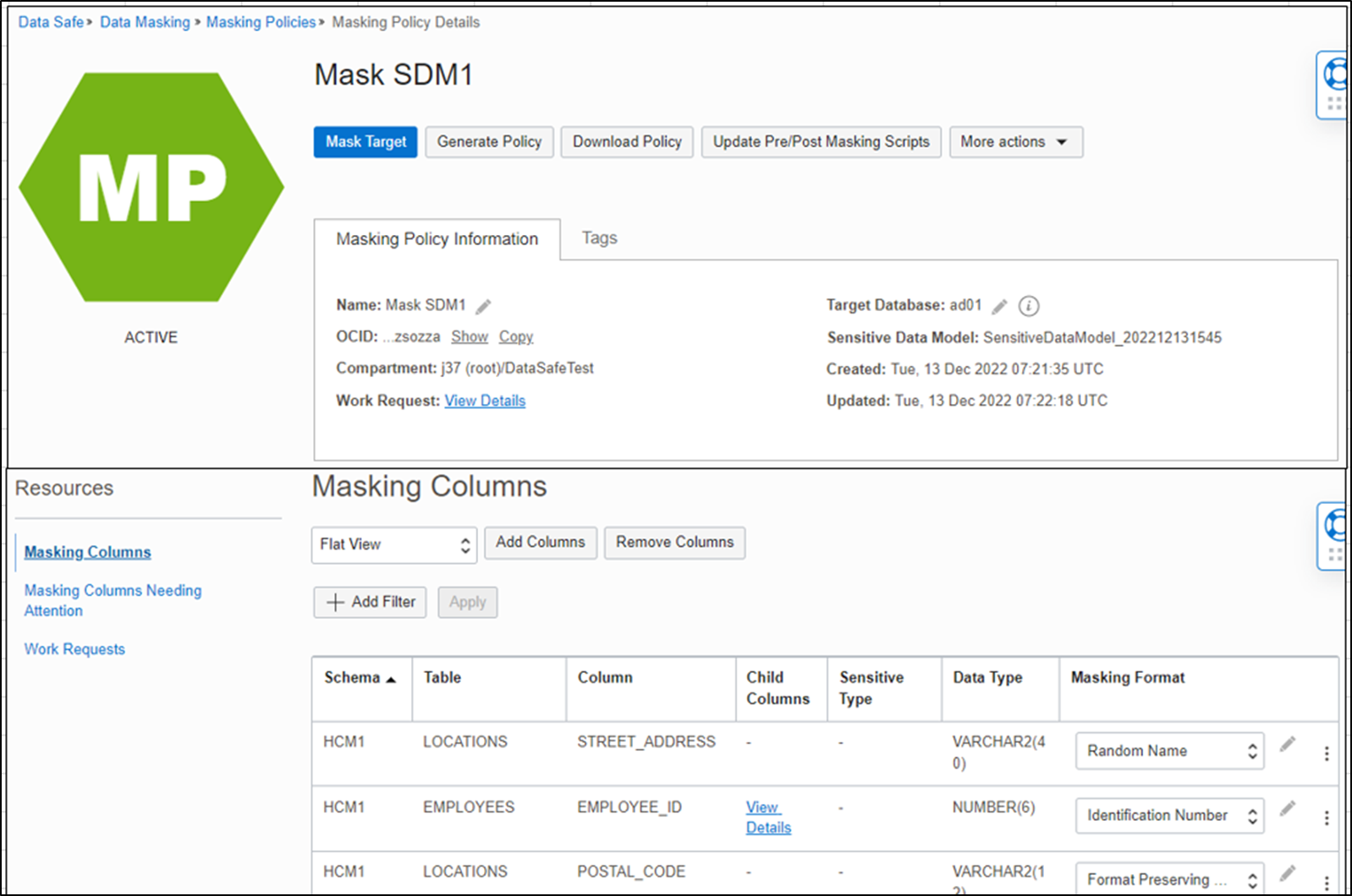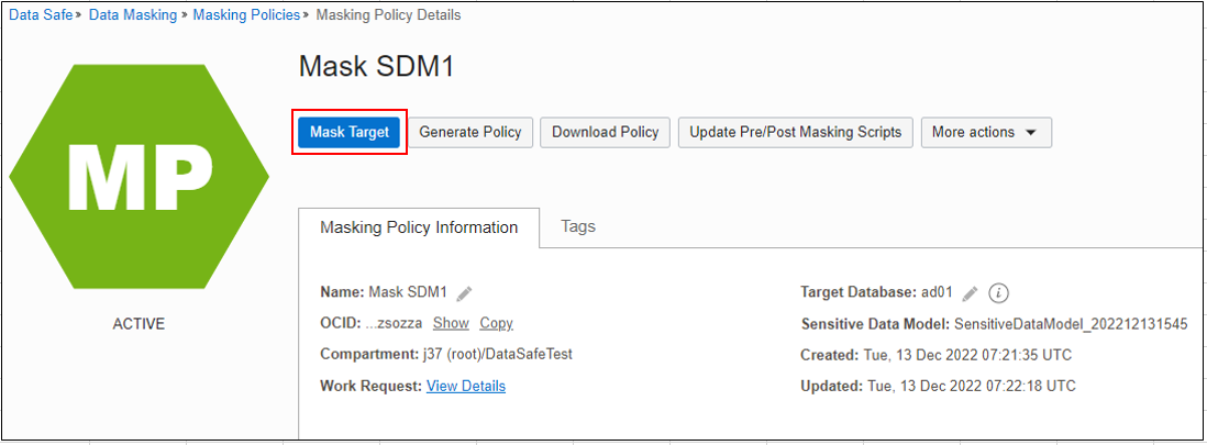 위에서 생성한 Target Database에 대한 Sensitive Data Model을 선택하여 Masking Policy를 생성한다.