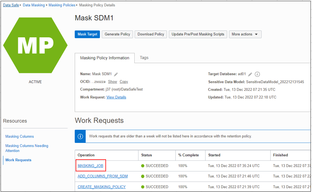 생성된 Masking Policy을 확인하고 필요시 수정한다.