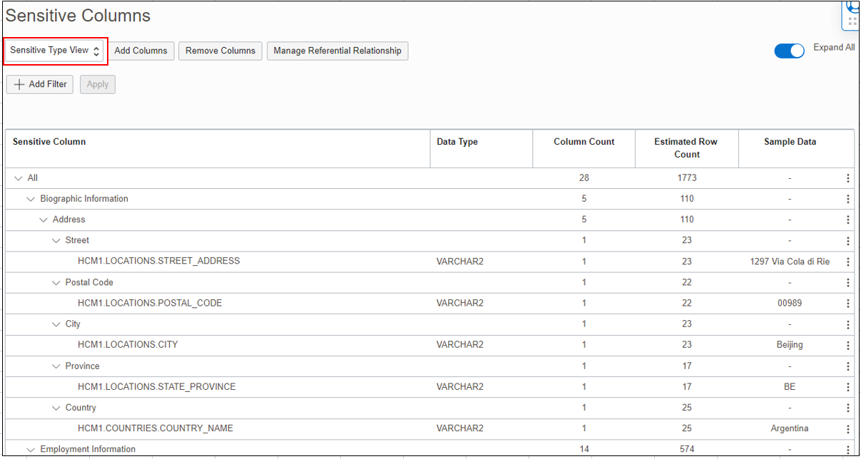 아래와 같은 형식으로도 Sensitive Data 컬럼을 조회할 수 있다.