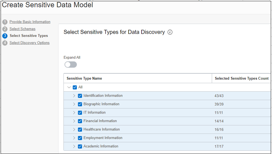Sensitive Data를 추출하기 위한 기준인 Sensitive Type을 선택한다.