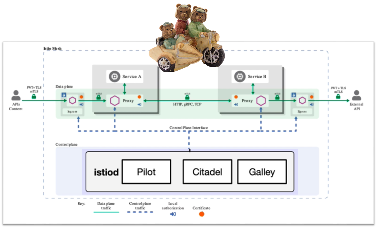 • Pilot: Svc 검색, 수신 게이트웨이 푸시, 게이트웨이 정책, 가상 서비스, Envoy 프록시에 대한 대상 규칙