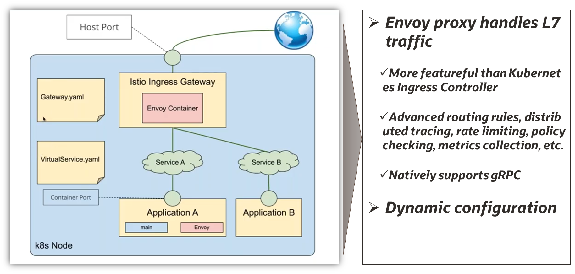 또는 애플리케이션 포드 자체가 순수하게 Kubernetes를 실행하지 않는 경우에도 Istio를 활용하고 기능이 더 풍부한 Ingress Gateway 리소스를 활용할 수 있습니다. Envoy 프록시를 게이트웨이로 사용하는 Istio의 기능인 Ingress Gateway(nginx와 반대)를 점진적으로 채택하여 그렇게 할 수 있습니다. Istio가 수신 트래픽을 관리하는데 어떻게 도움이 되는지 접근 방식을 살펴봅니다.