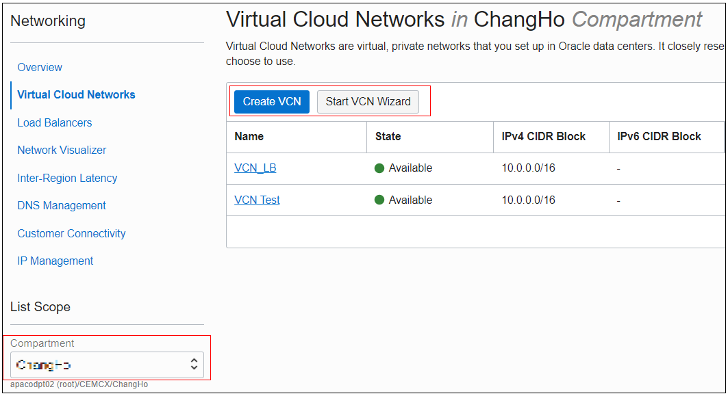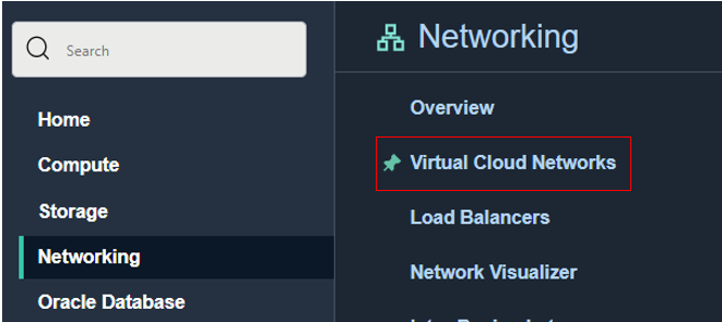 Networking > Virtual Cloud Networks 메뉴를 선택합니다