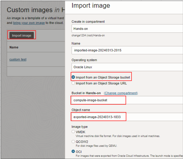 Object Storage Bucket에 저장된 Custom Image를 가져온다.