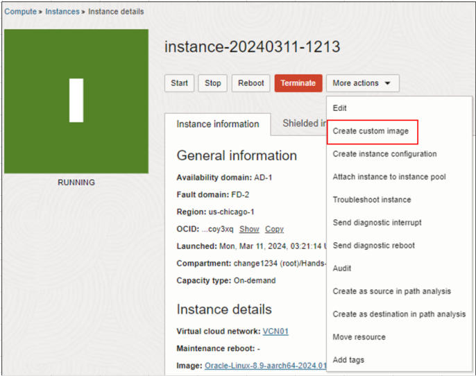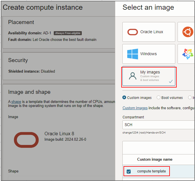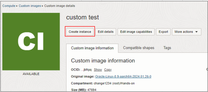 Custom Image가 Import되면 Create Instance로 Compute Instance를 생성할 수 있다.