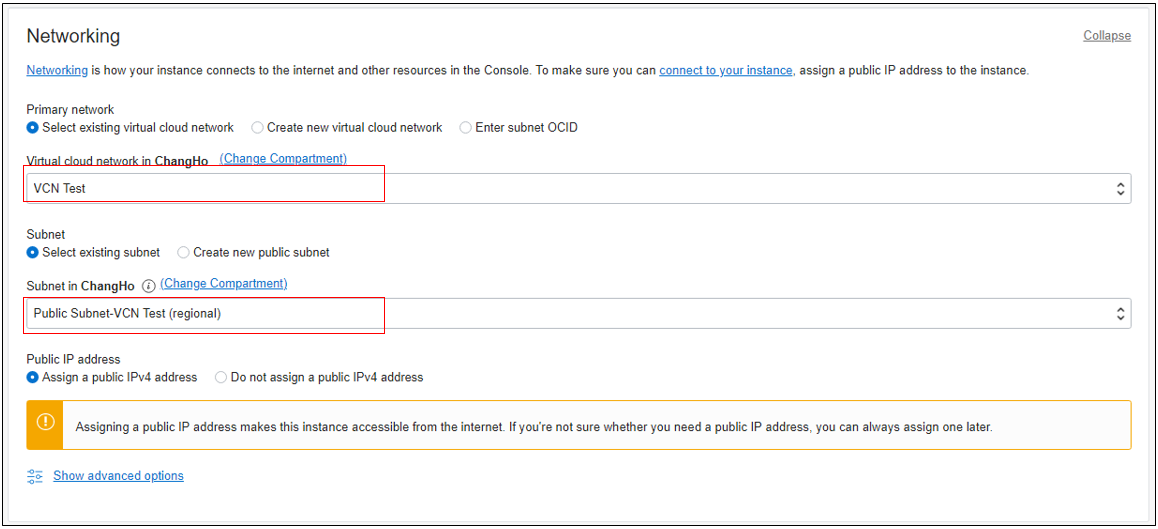 계속 Compute Instance를 설정을 위해 Networking section을 설정합니다.