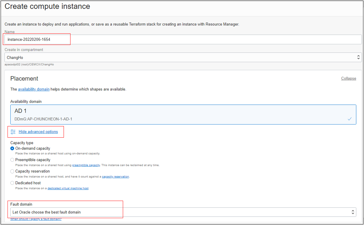 - Instance Type: Virtual Machine과 Bare metal machine 중 하나를 선택합니다.