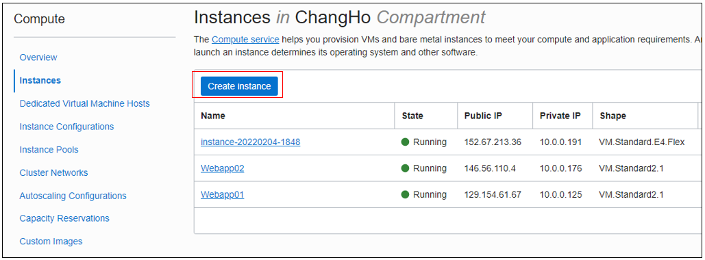 OCI에서 컴퓨트 인스턴스 Compute Instance를 만들어 보도록 하겠습니다.