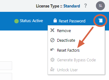 MFA 리셋이 필요한 경우 IDCS 사용자 상페 페이지로 이동하여 우측 상단의 메뉴를 클릭한 후 Reset Factors를 하면 됨