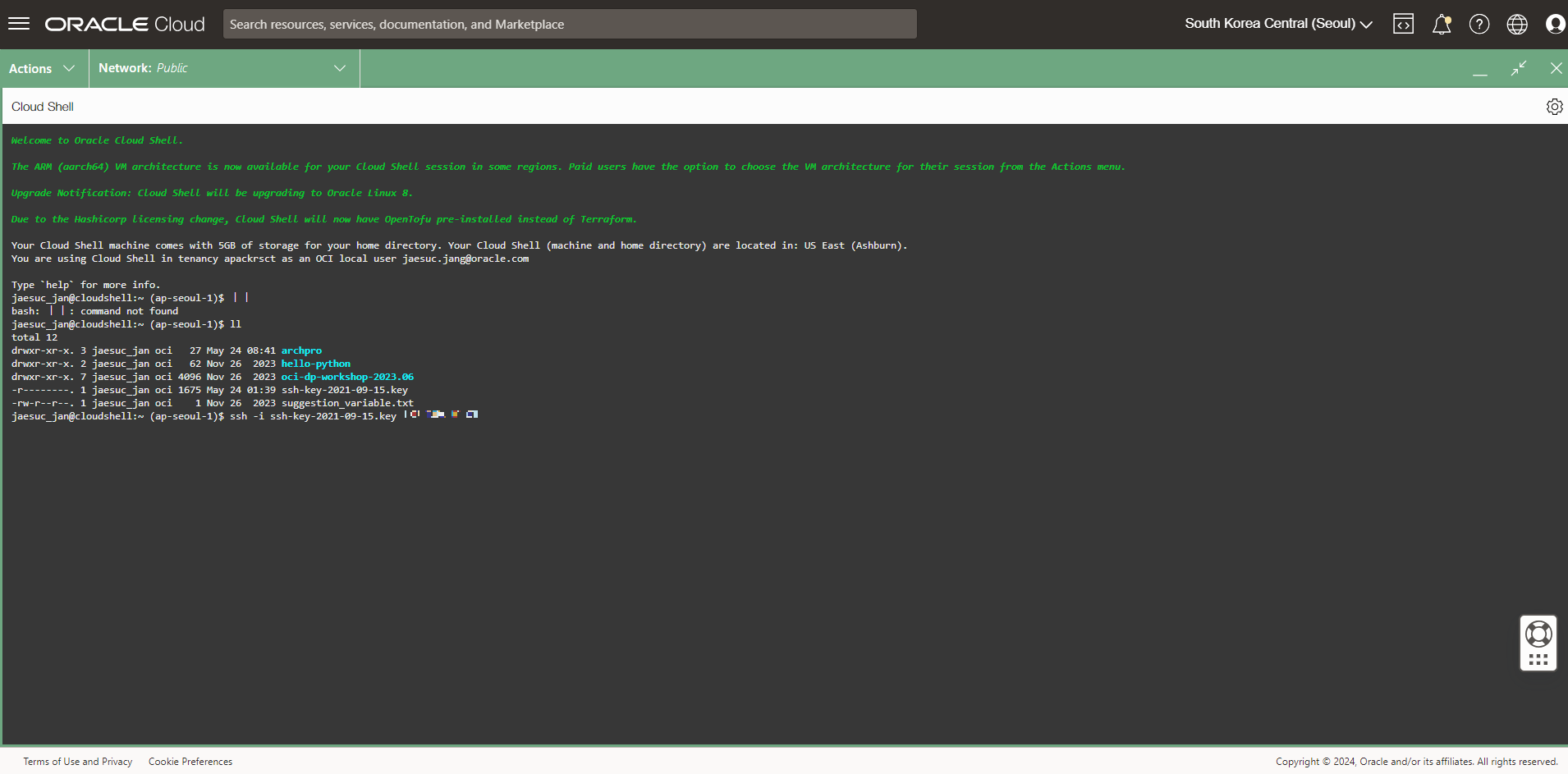 - 무료 스펙인 A1.Flex 에 오라클 리눅스 클라우드 디벨로퍼를 선택했습니다. (OCI CLI 가 기본적으로 설치되어 있습니다.)