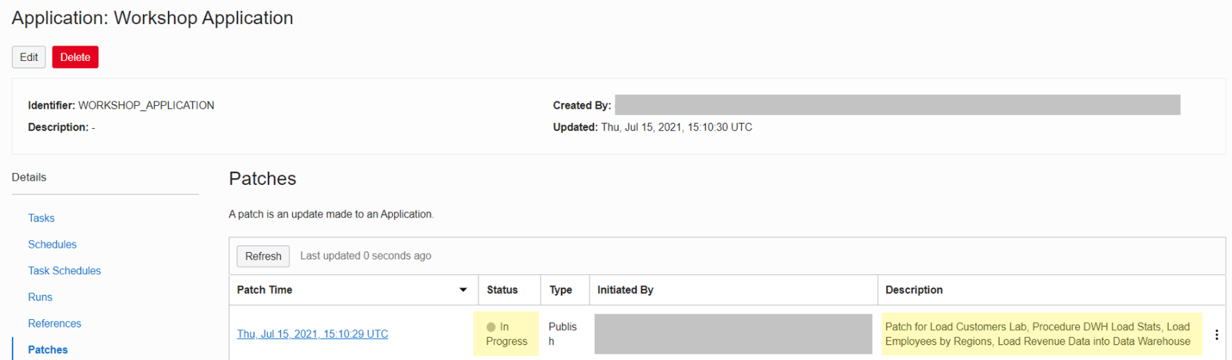 패치 단계는 Application에 Publish 된 Task에 대한 업데이트가 포함됩니다.
