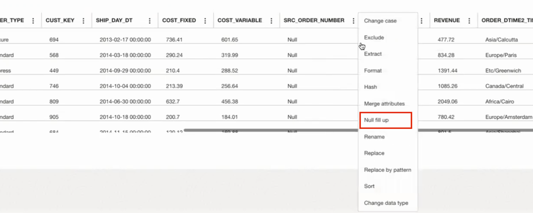 컬럼 메뉴(삼점 메뉴)를 통해 특정 컬럼에 대한 변경 작업을 수행 할 수 있습니다. Next를 클릭합니다.