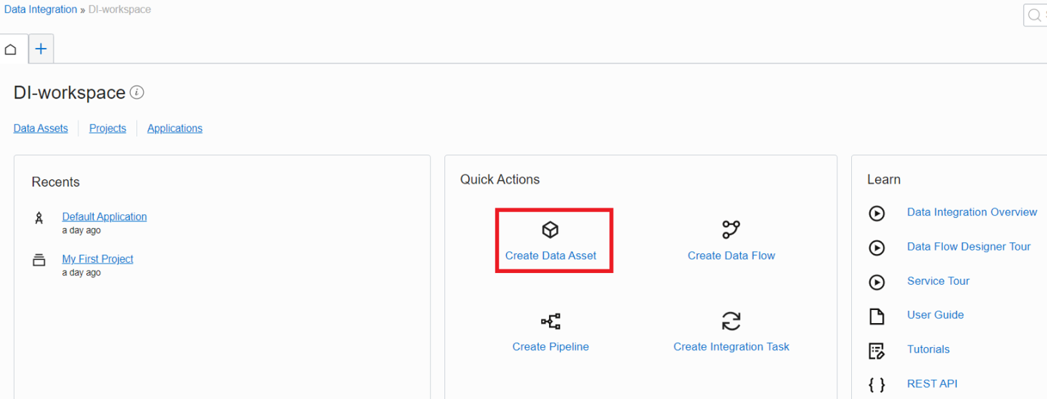 Source Object Storage의 Data Asset을 Data Integration workspace 에서 생성합니다.