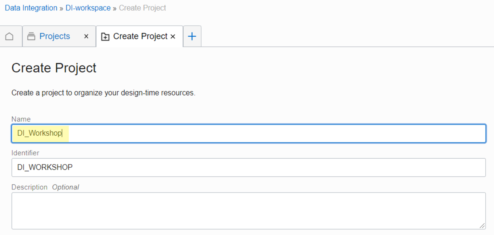 Data Integration Task가 생성될 Project를 생성합니다.