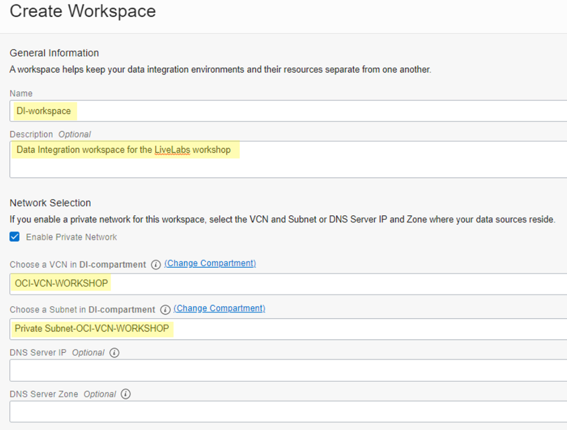 OCI Data Integration workspace 구성