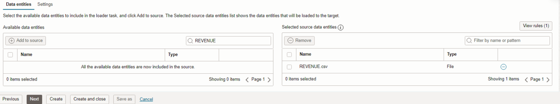 Available Data entities에 패턴을 통해 소스로 사용될 파일을 여러개 선택할 수 있습니다. 대상 파일은 add to source 버튼을 클릭하여 선택합니다. Next를 클릭합니다.