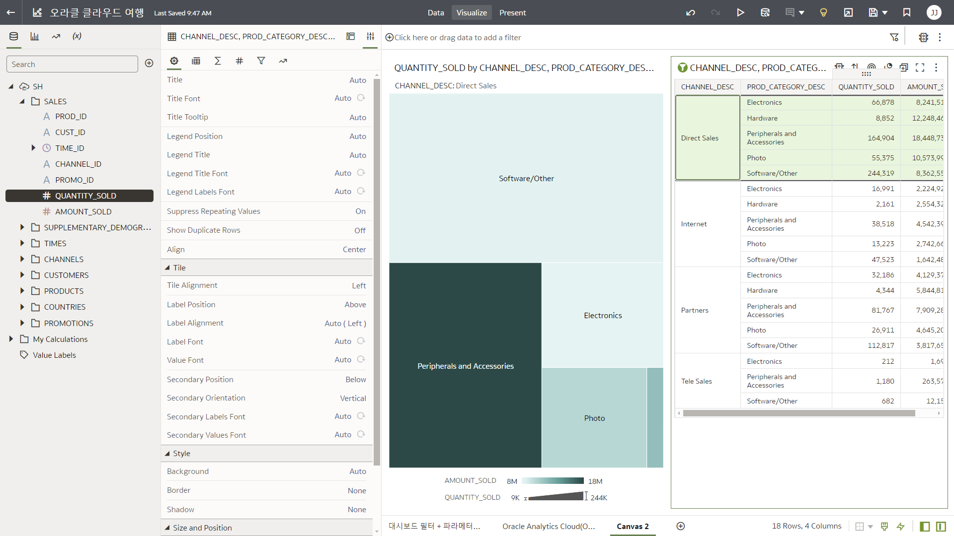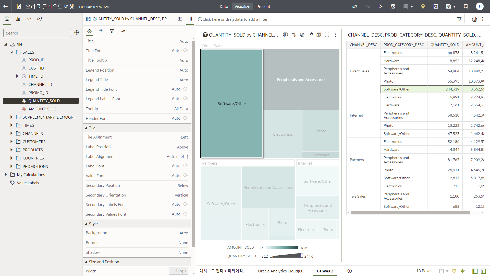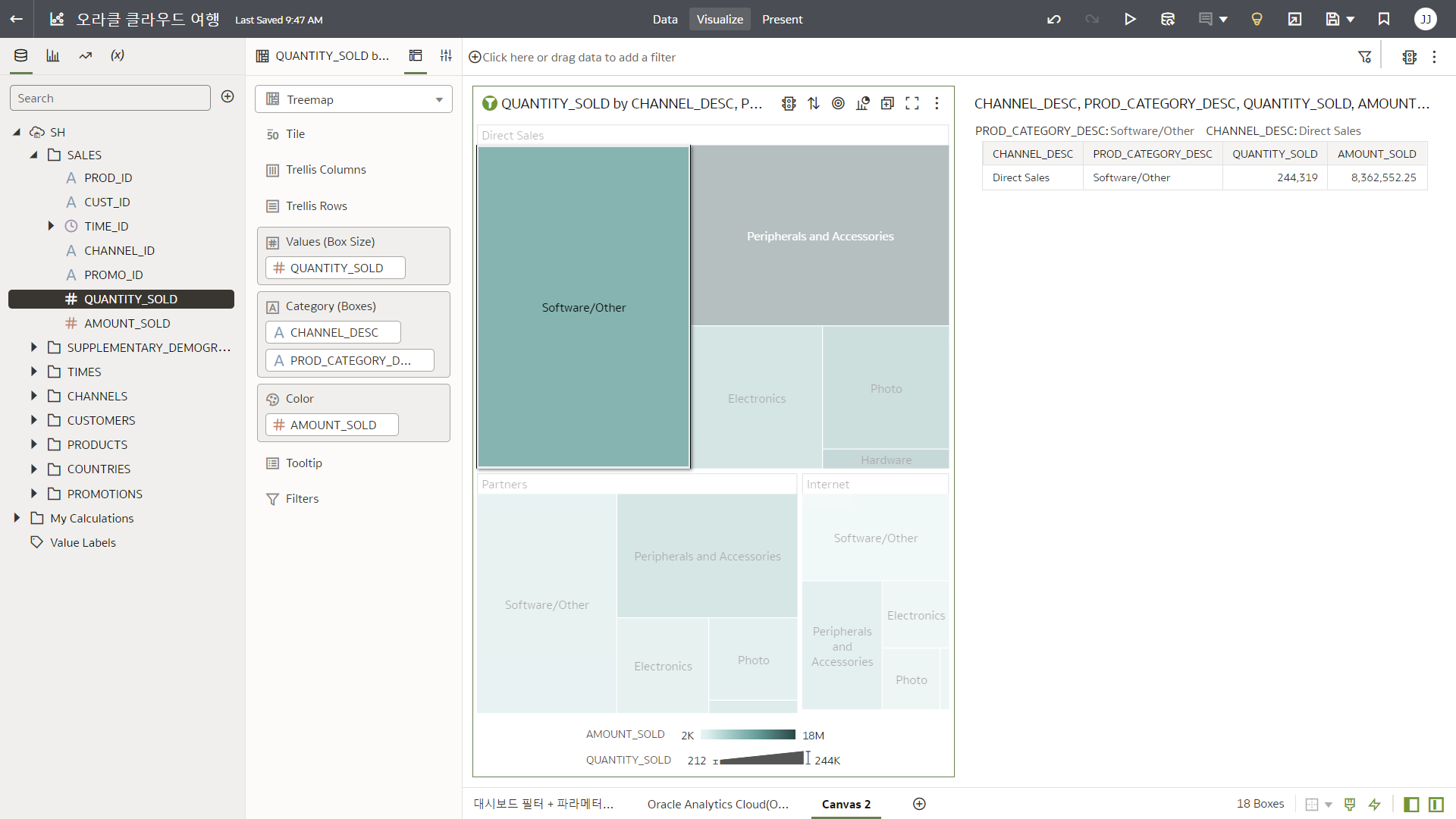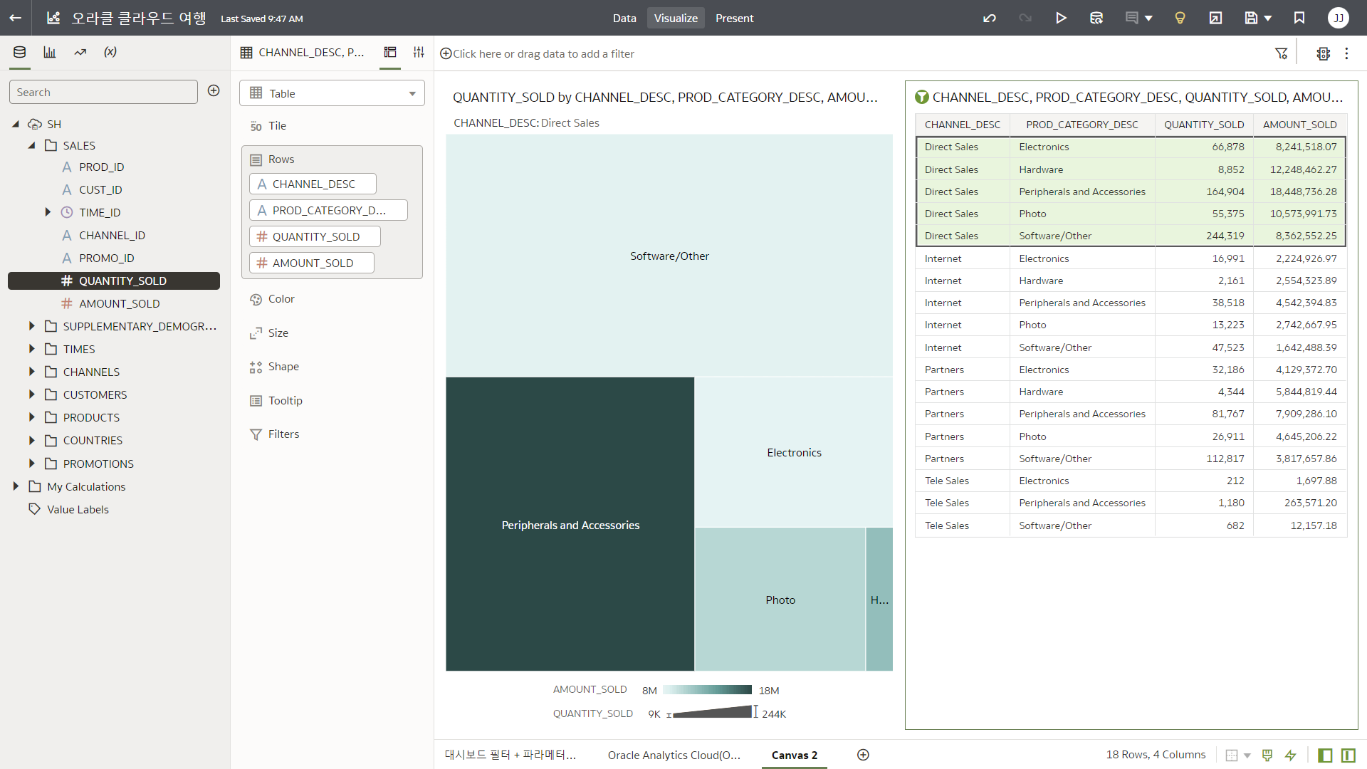 아래와 같이 위테이블 시각화 차트에서 중복값이 합쳐져서 표현되면서, Direct Sales 영역만 한번에 쉽게 선택 할 수 있습니다.