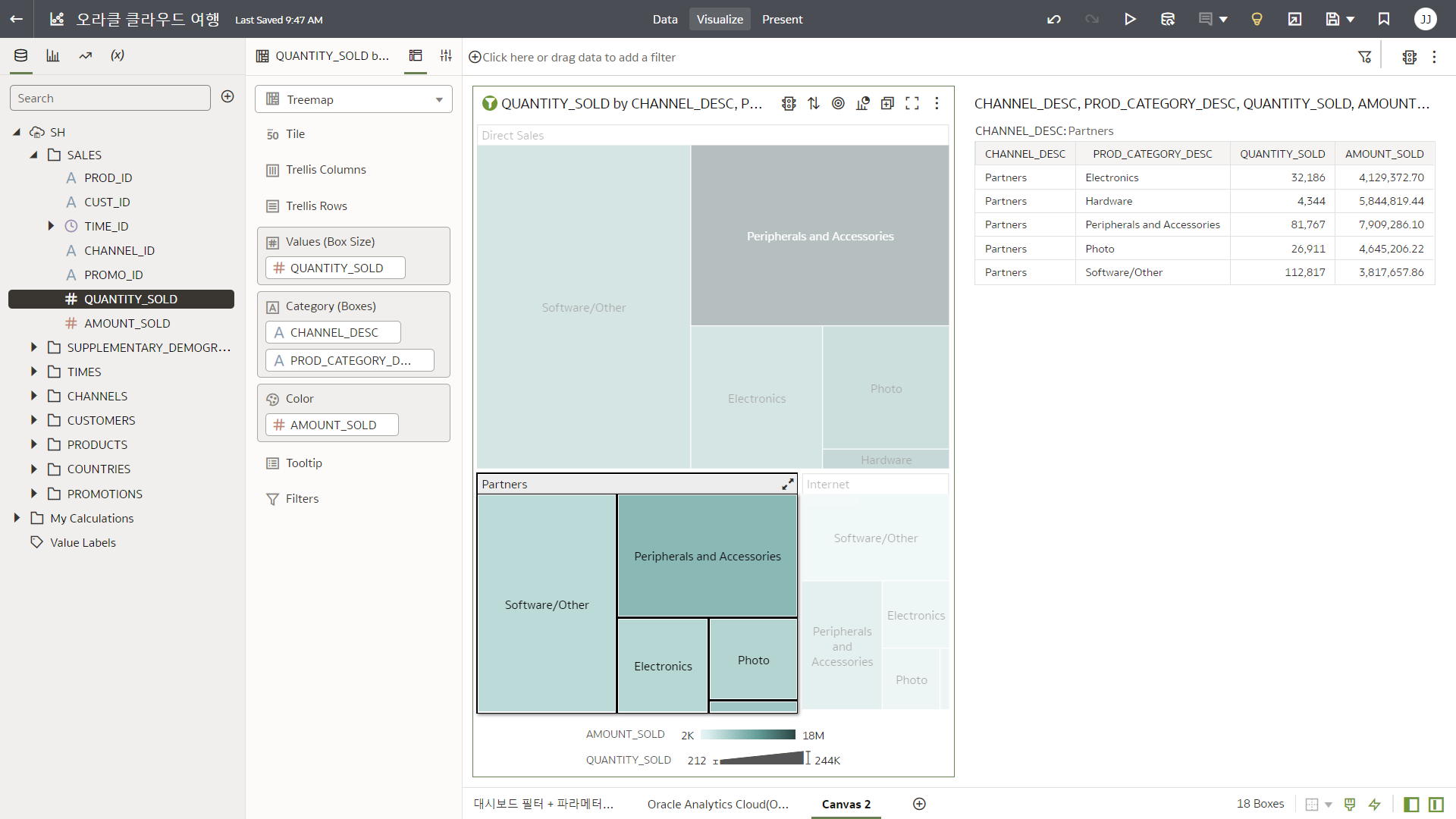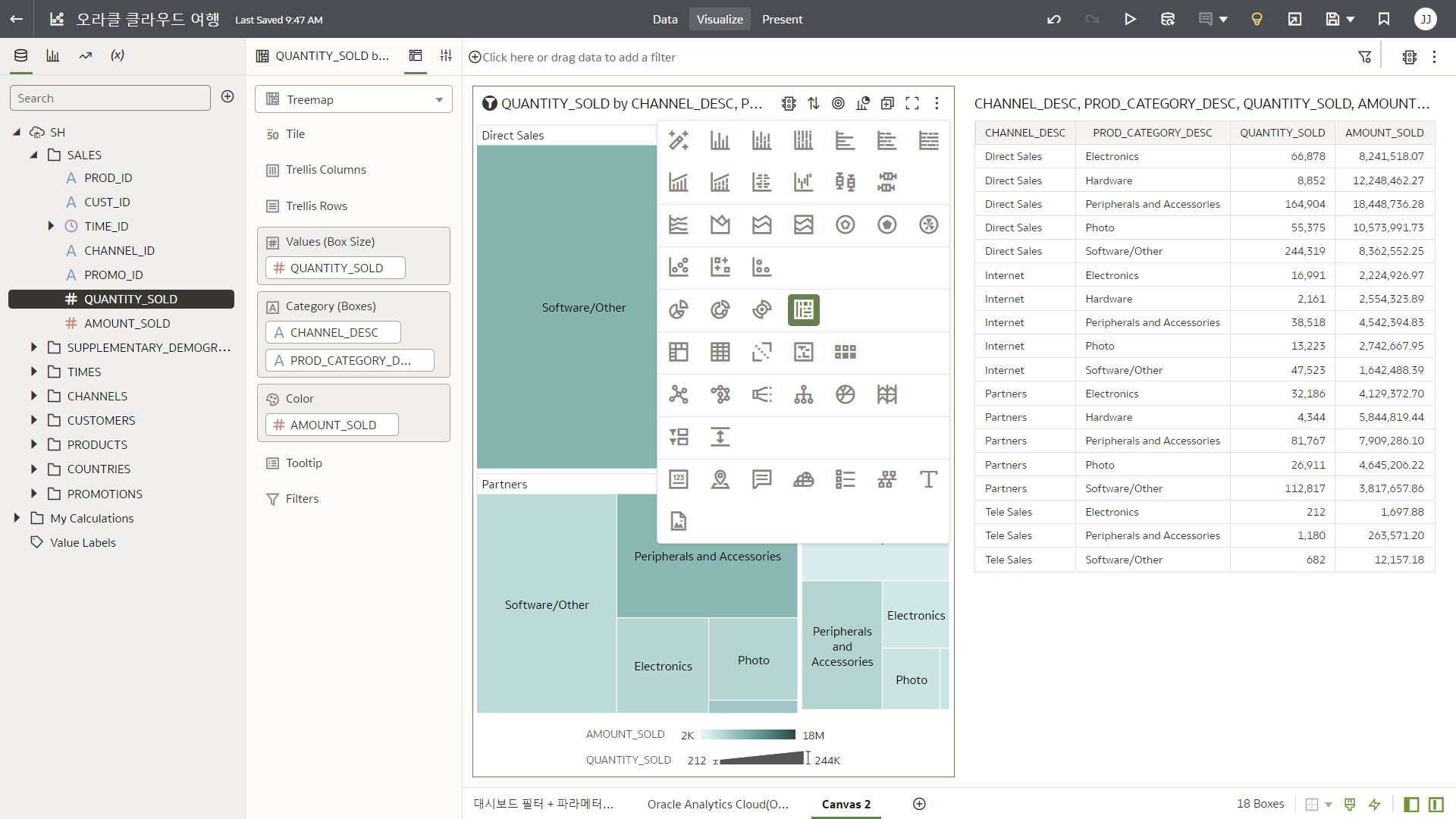 OAC 에서 Use as Filter 기능을 통해 보다 인터랙티브한 차트를 구성해 보겠습니다.