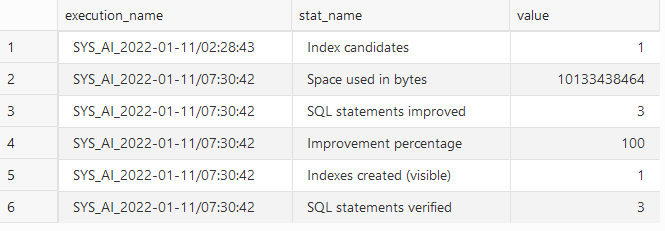 SELECT DBMS_AUTO_INDEX.report_activity(activity_start => TO_TIMESTAMP('2022-01-10','YYYY-MM-DD'),