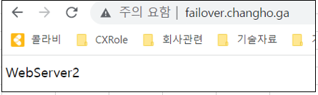 primary web1 stop하면 30초후에 web2로 자동 failover되는 것을 확인할 수 있다.