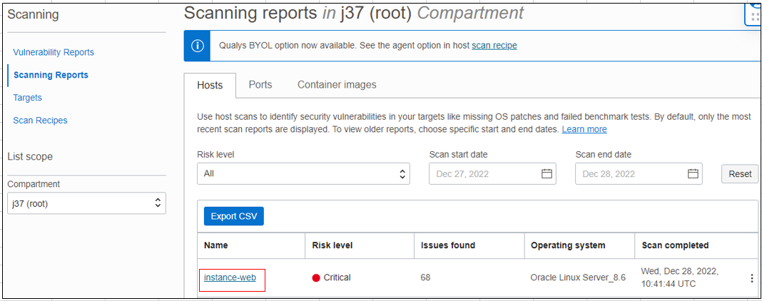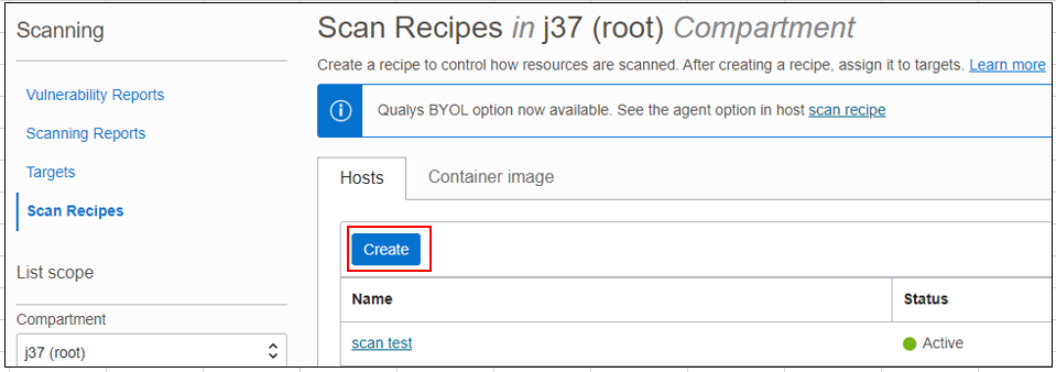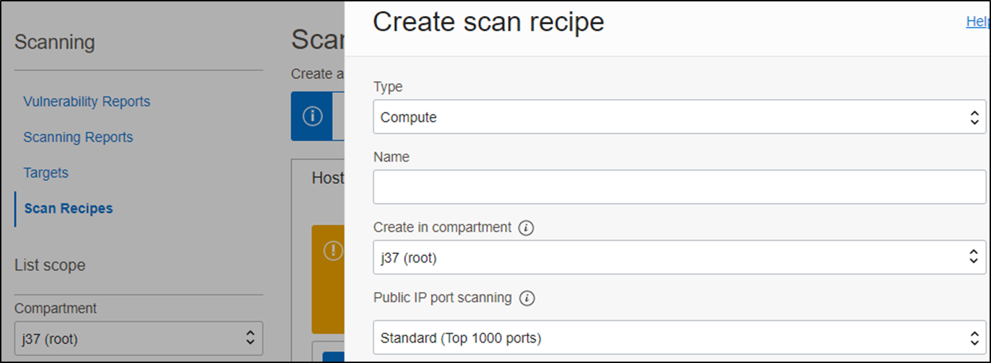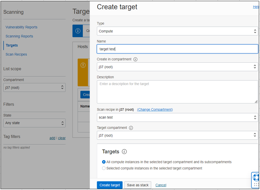 Scan할 대상의 범위(특정 Compartment내 Instance)를 설정한다.