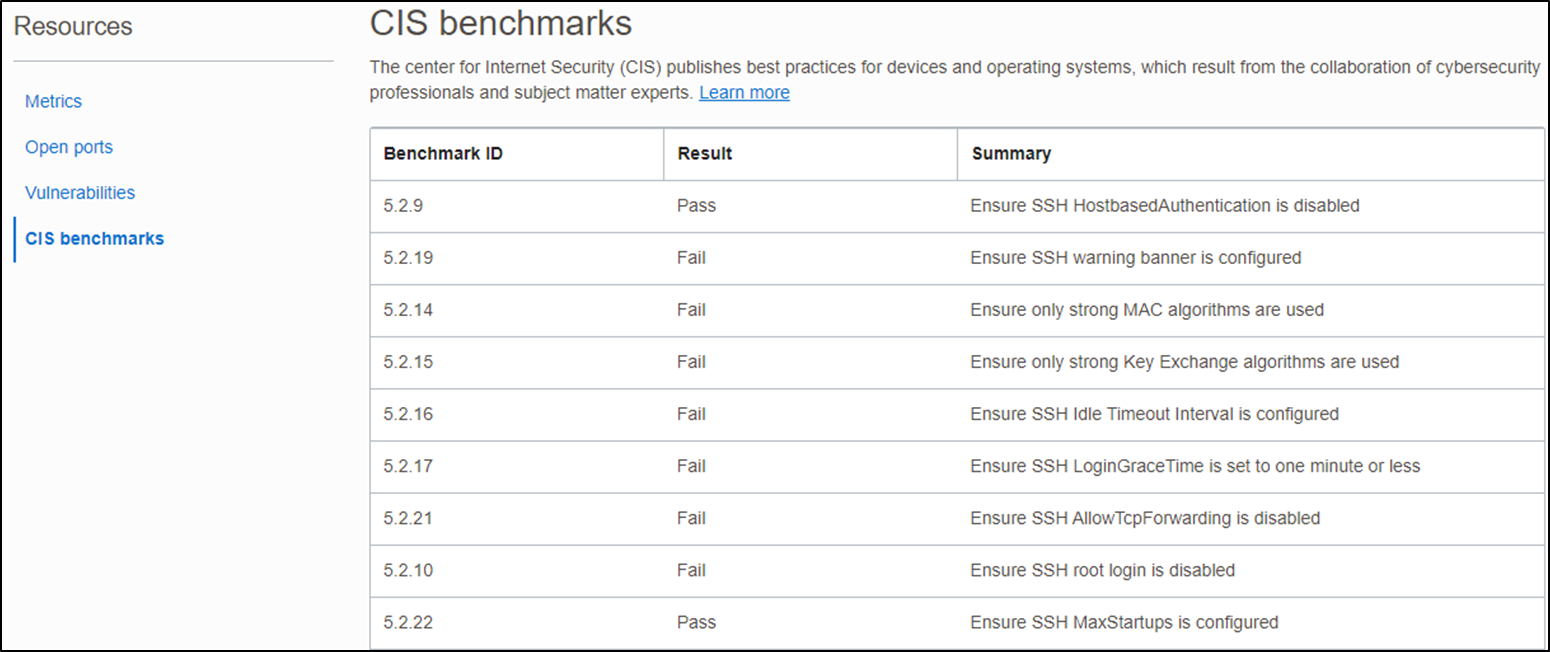 - Check for compliance with industry-standard benchmarks published by the Center for Internet Security (CIS)