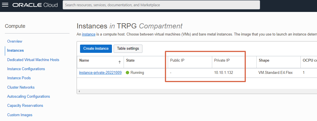 1) 네트워크 및 컴퓨트 인스턴스 생성 (Private)