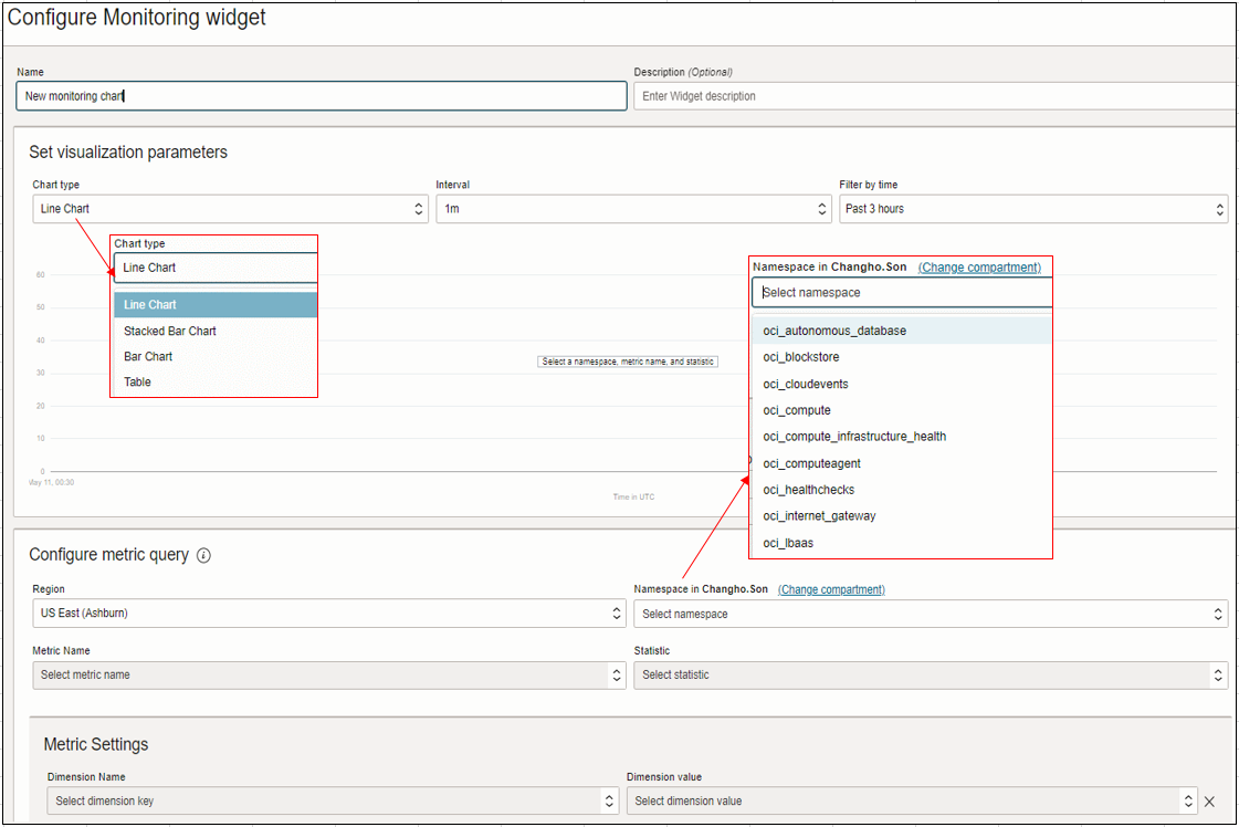 OCI Console에서 사용자 지정 Dashboard를 생성하여 테넌트에 대한 주요Resource의 메트릭을 모니터링 할 수 있다