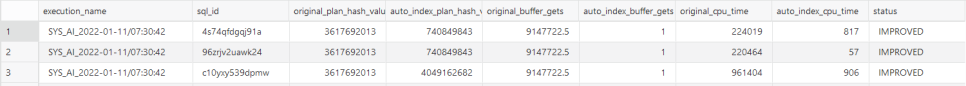 from dba_auto_index_executions