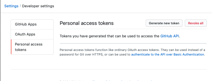 5. 새 토큰 생성을 클릭합니다. 계속하기 위해 이전에 인증하지 않은 경우 GitHub 계정을 인증하라는 메시지가 표시될 수 있습니다.