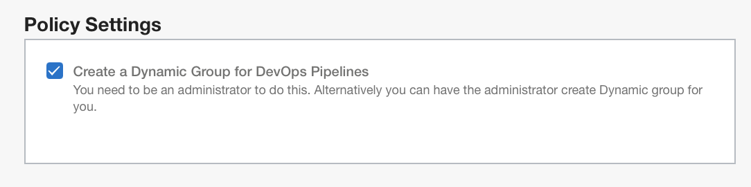 정책 설정: 변경할 필요 없음, 기본값 사용: DevOps 파이프라인용 동적 그룹 생성(선택됨).